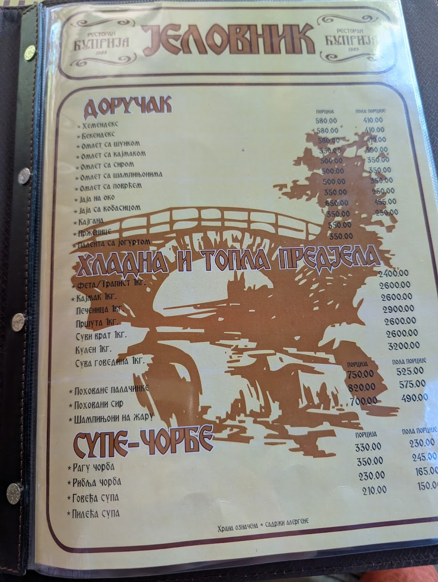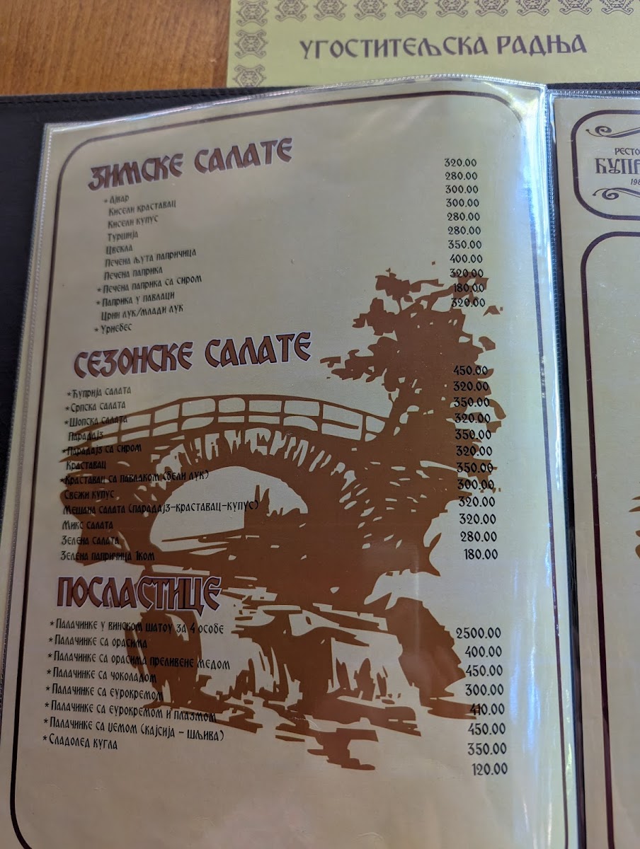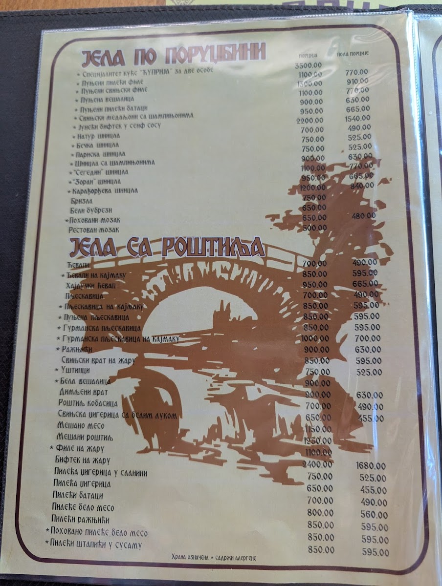 Restaurant Ćuprija Menu
