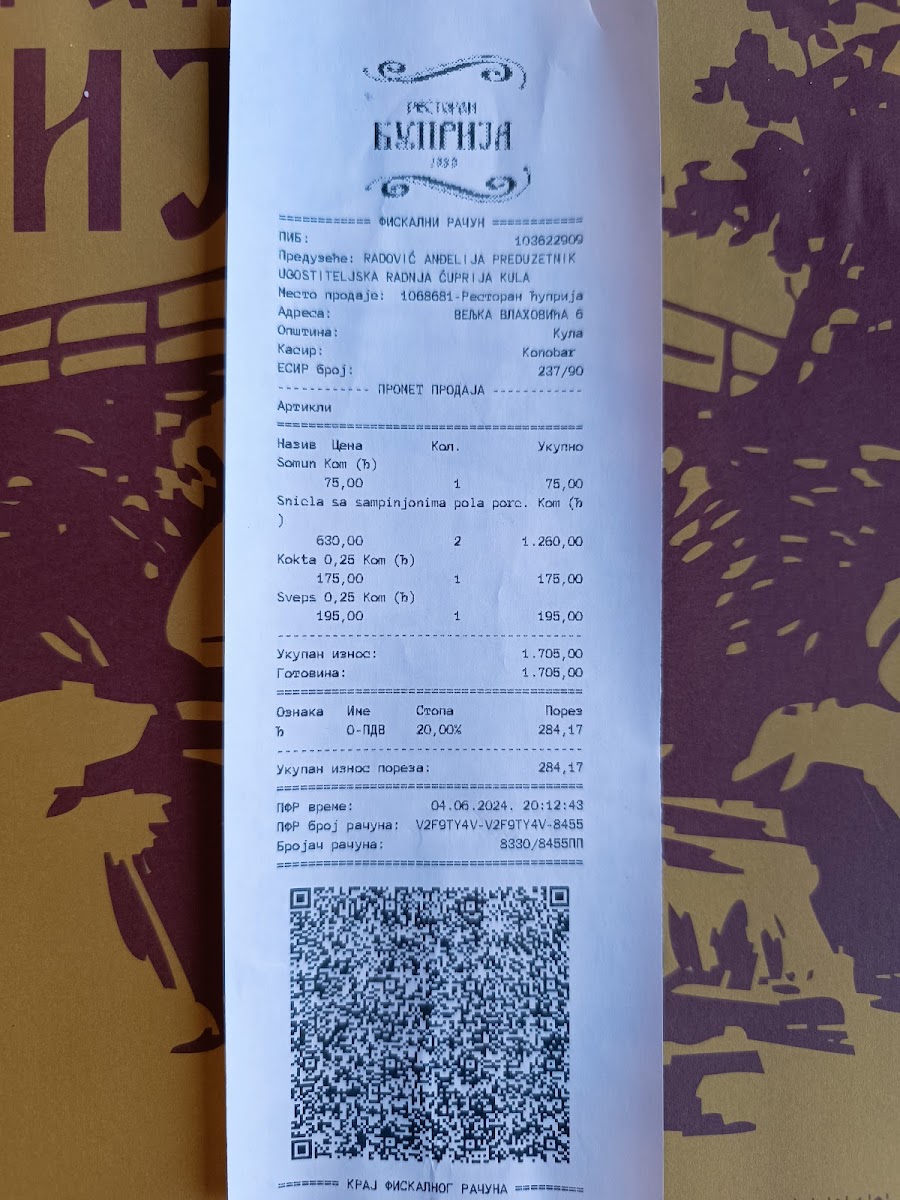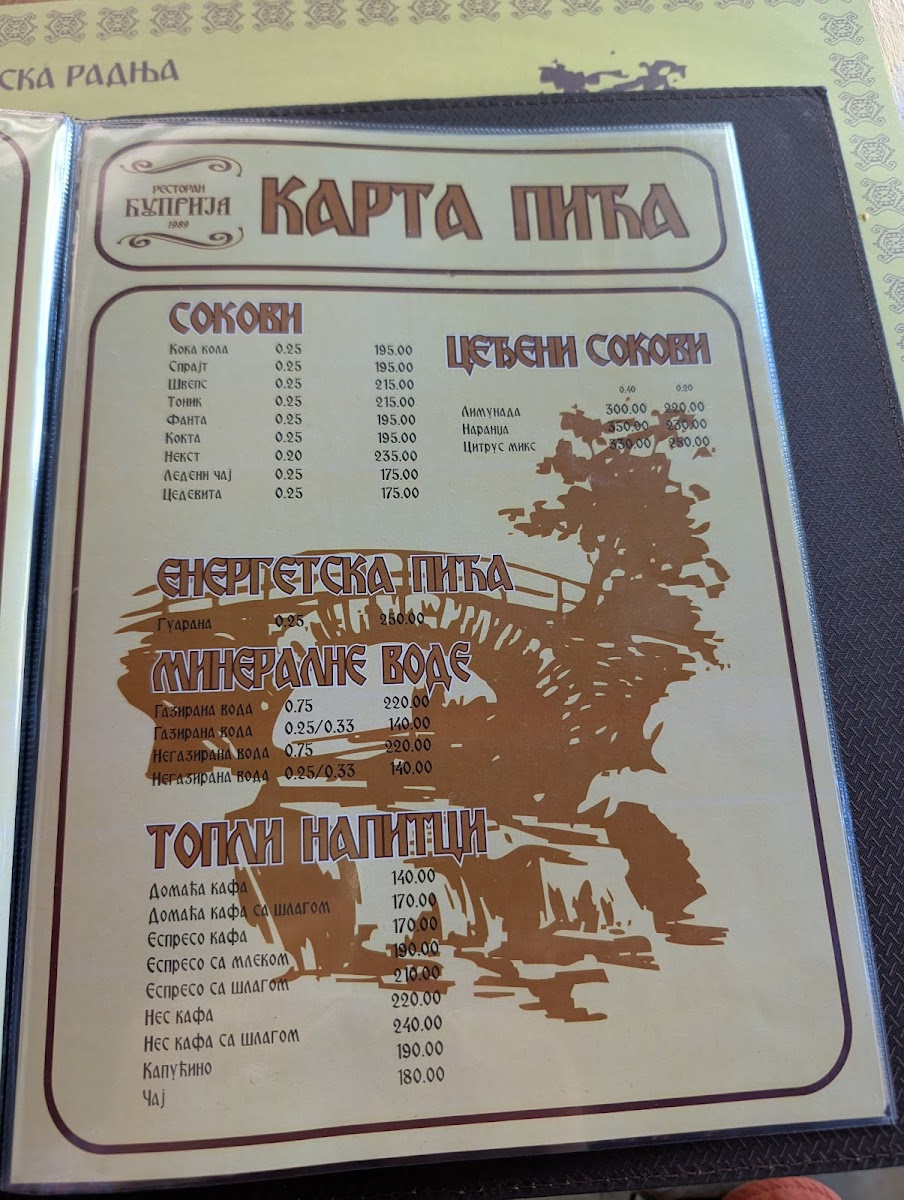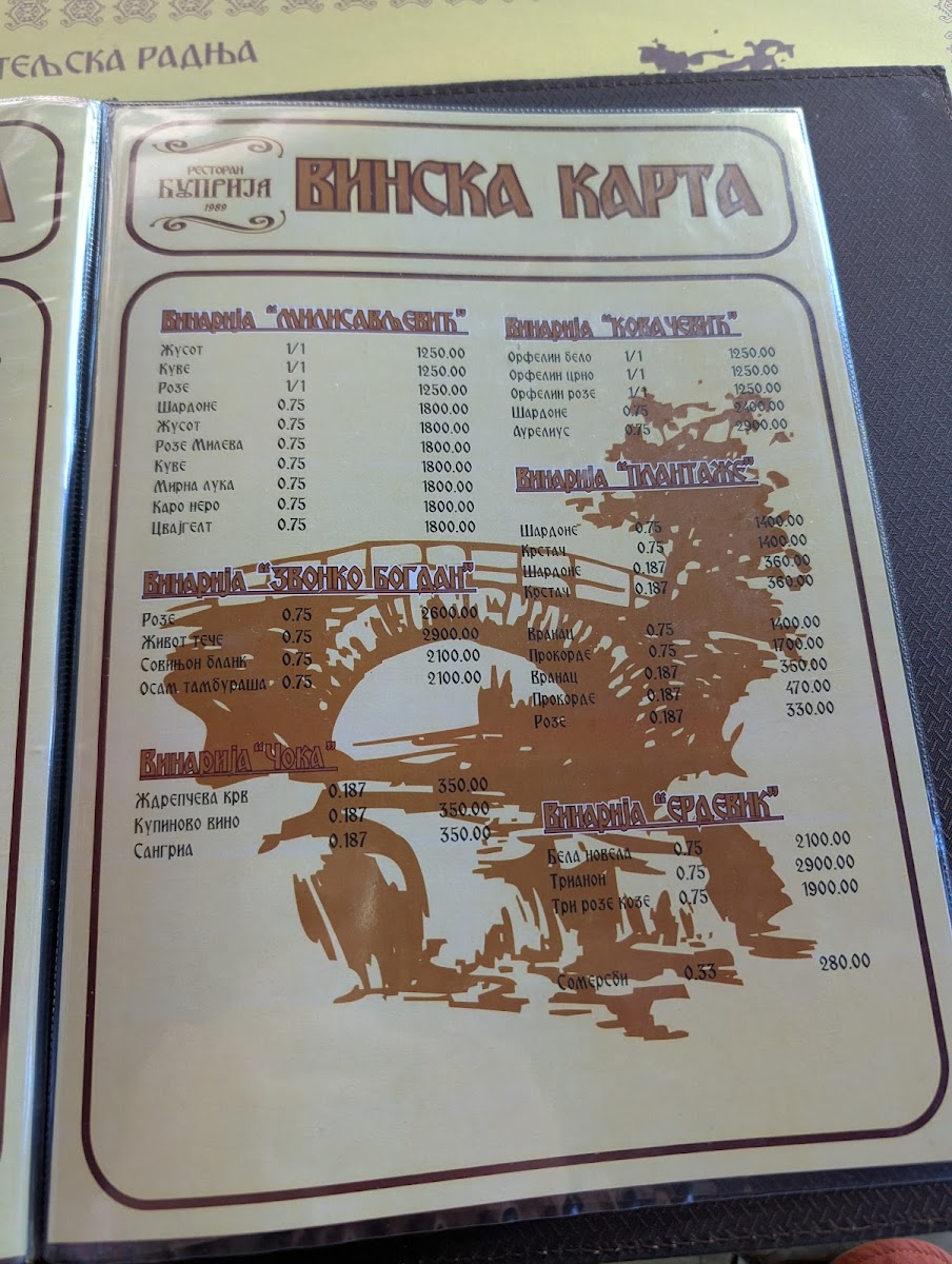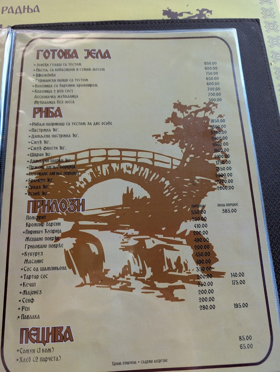 Restaurant Ćuprija Menu